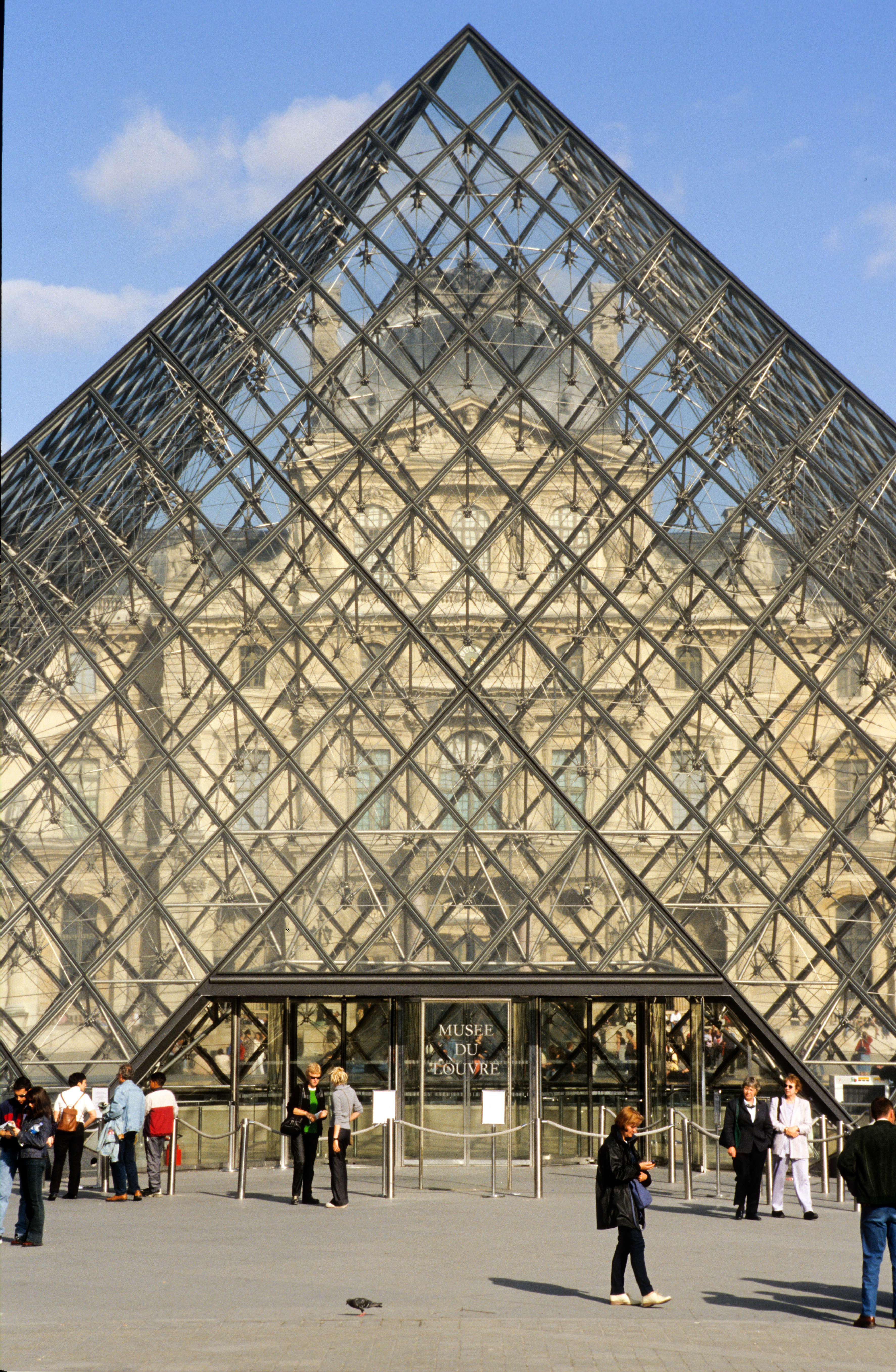 People walking in front of Louvre museum at Paris