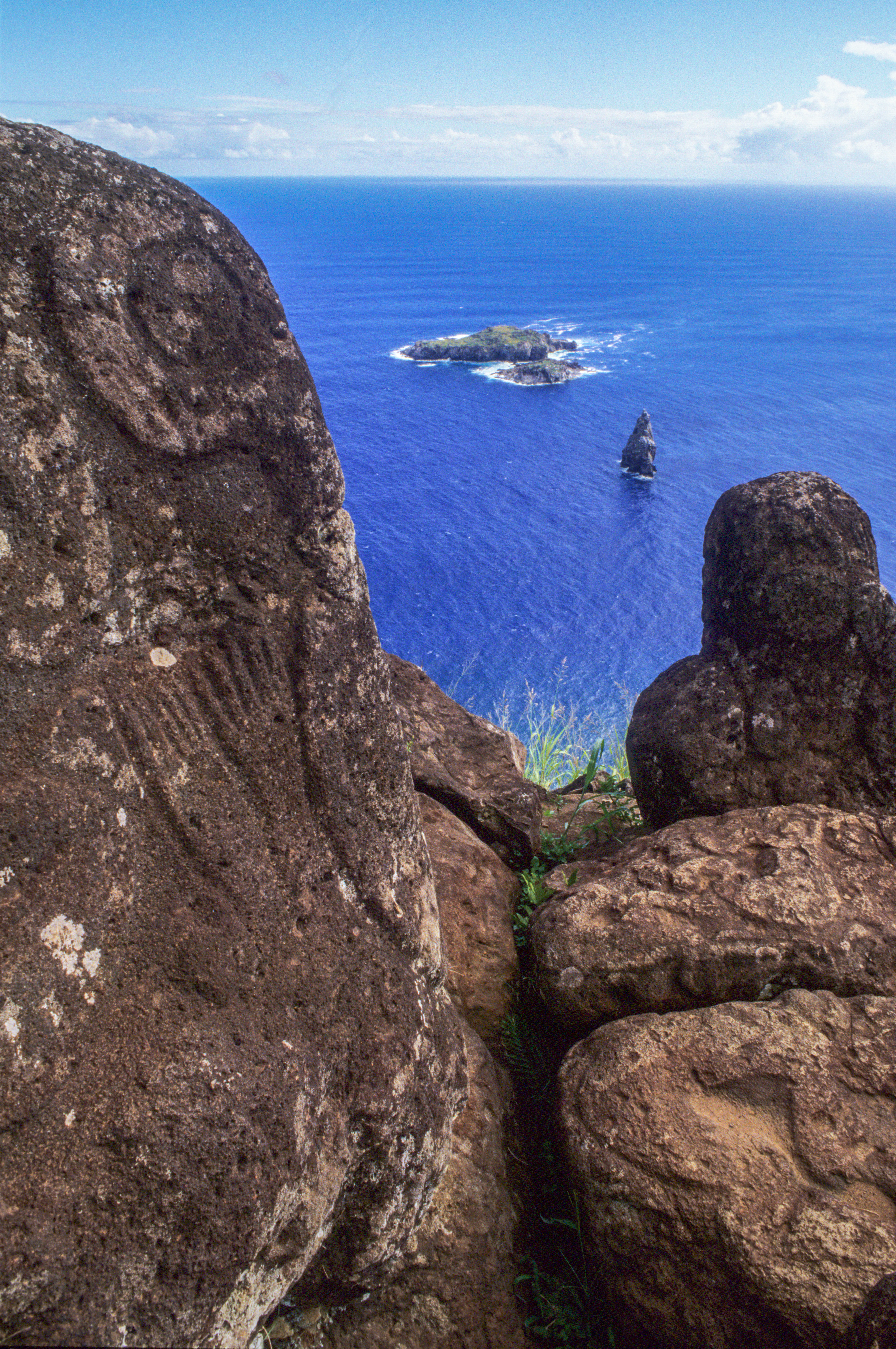 Petroglyphs and Motu Nui at Orongo of Easter Island