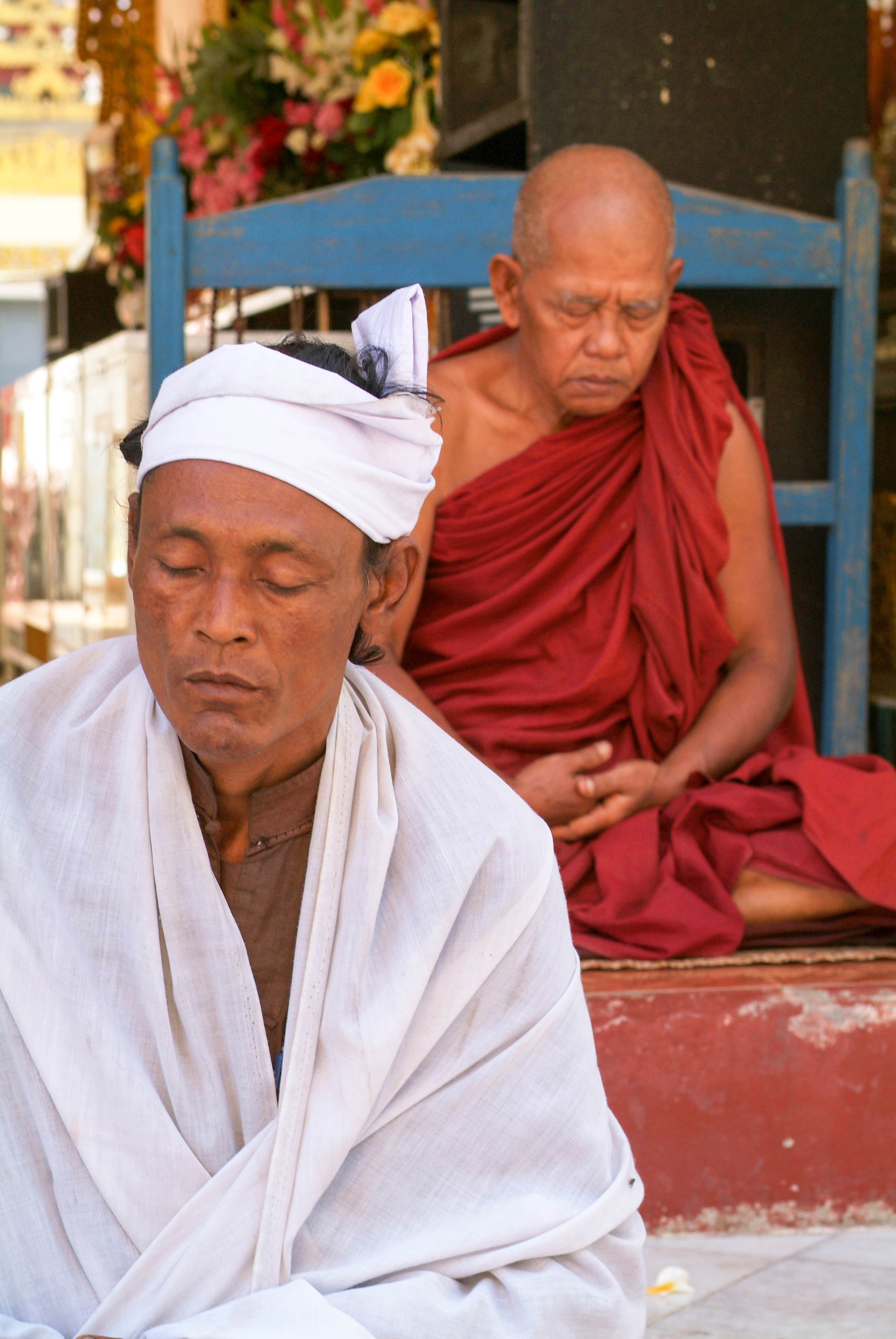 Monks on meditation at the Sule Paya Pagoda in Yangon