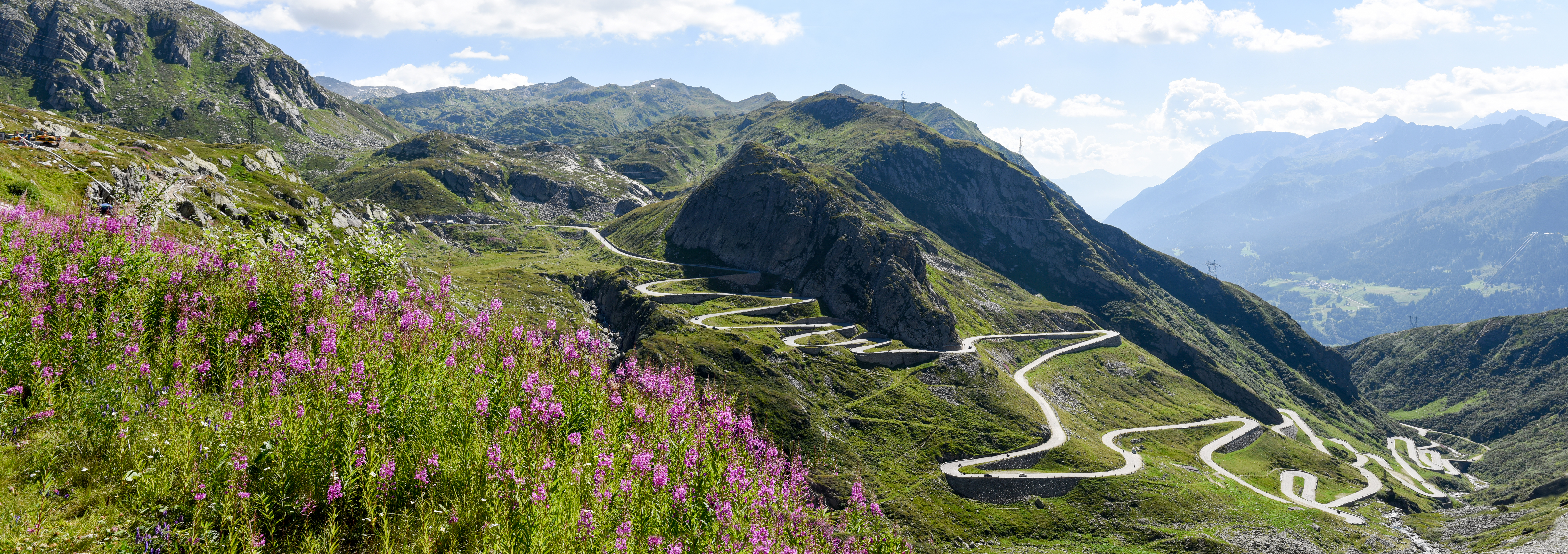 Tremola old road which leads to St. Gotthard pass on the Swiss alps