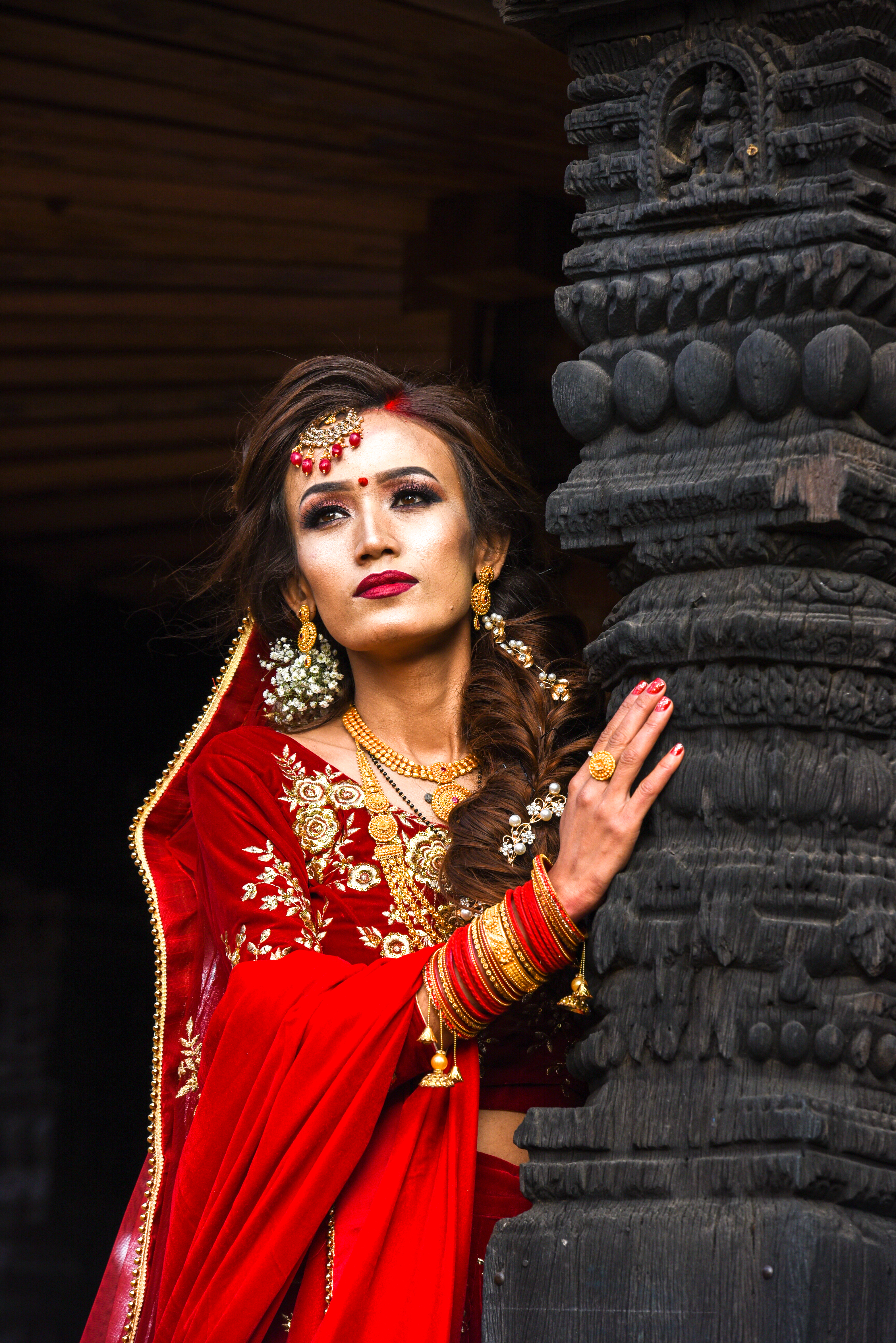 Beautiful bride with traditional clothes at Bhaktapur