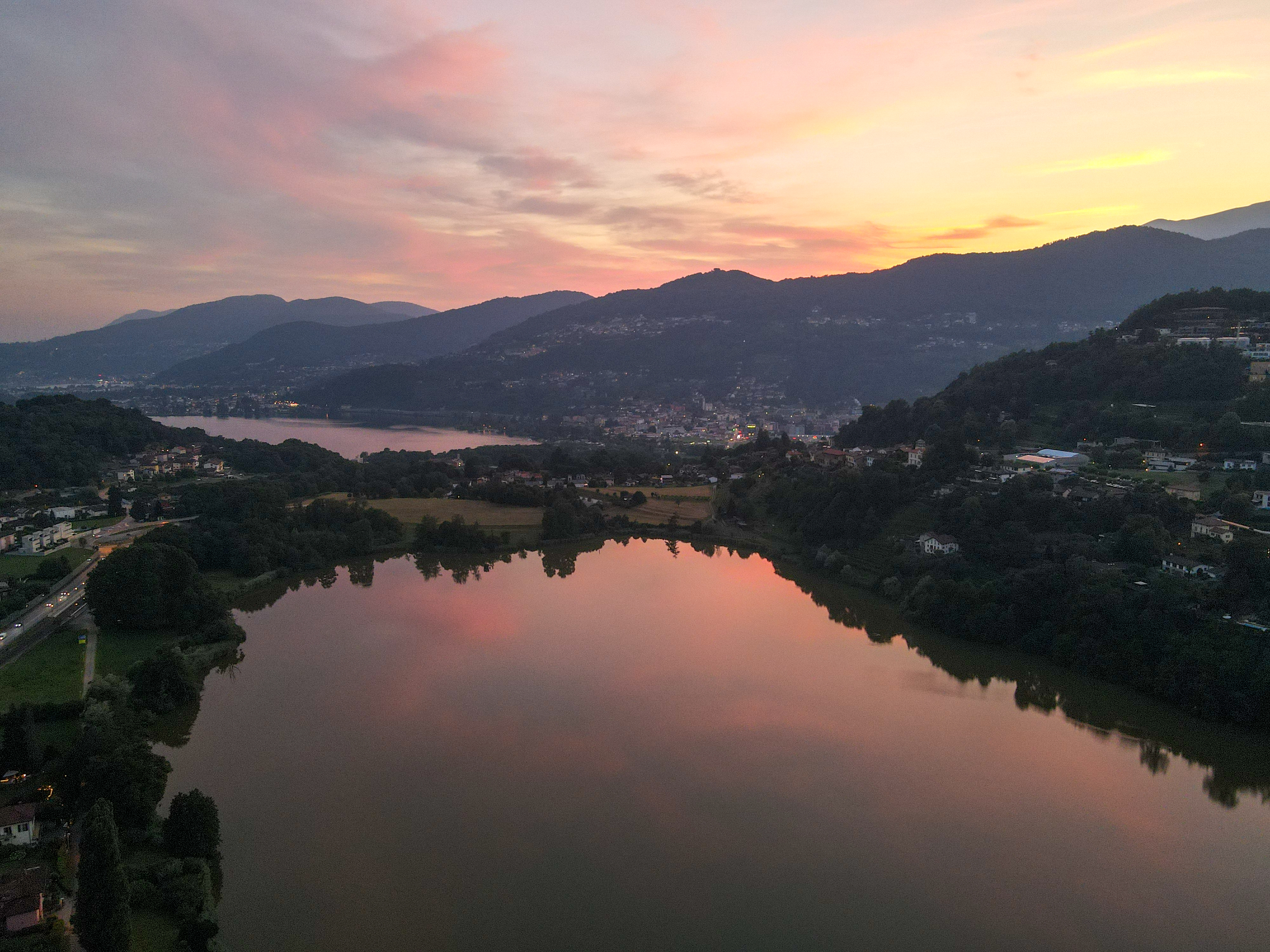 Sunset over lake Muzzano near Lugano on the italian part of Switzerland