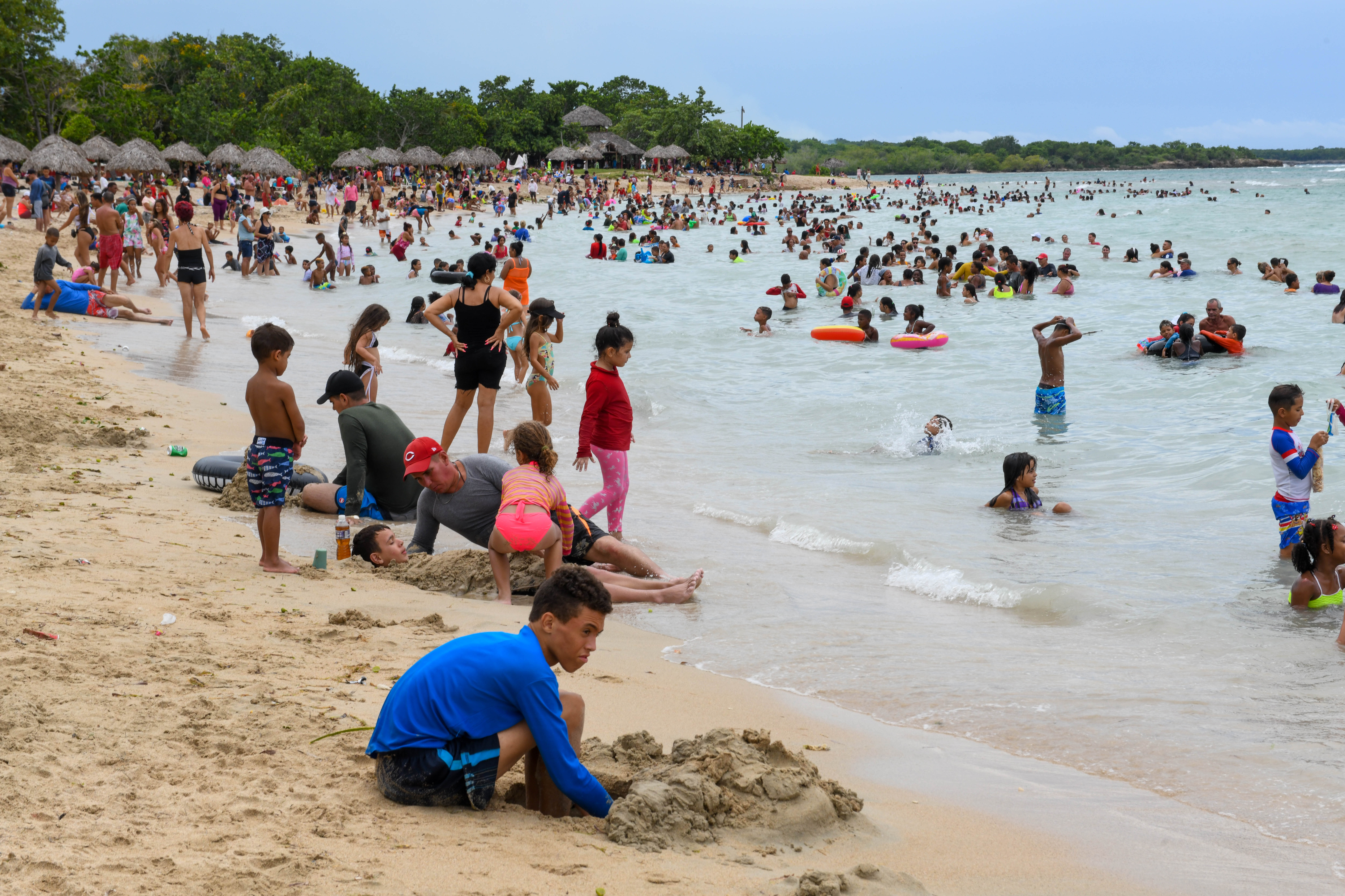 Crowded beach of Playa rancho Luna near Cinfuegos