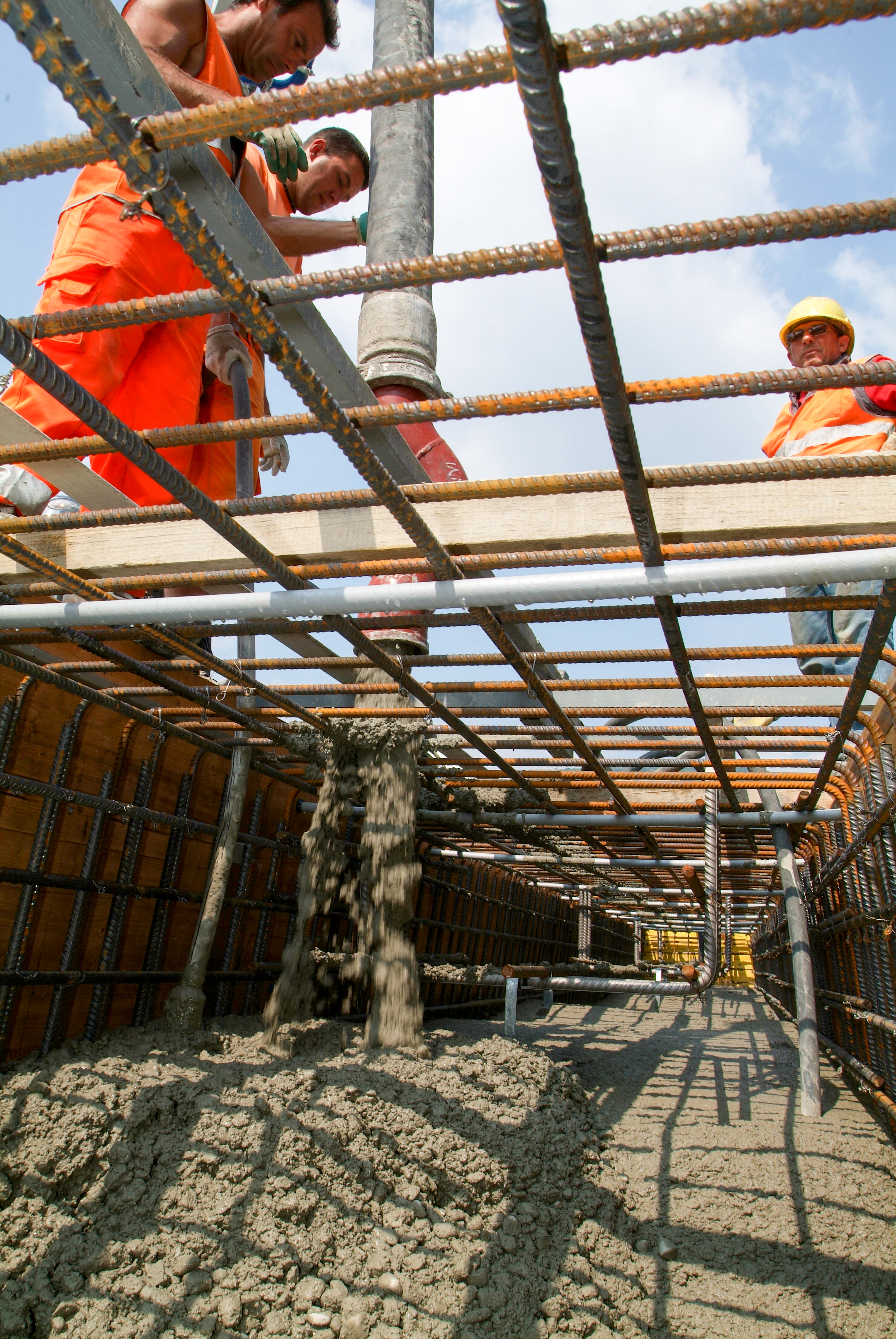 Workers during the concrete casting